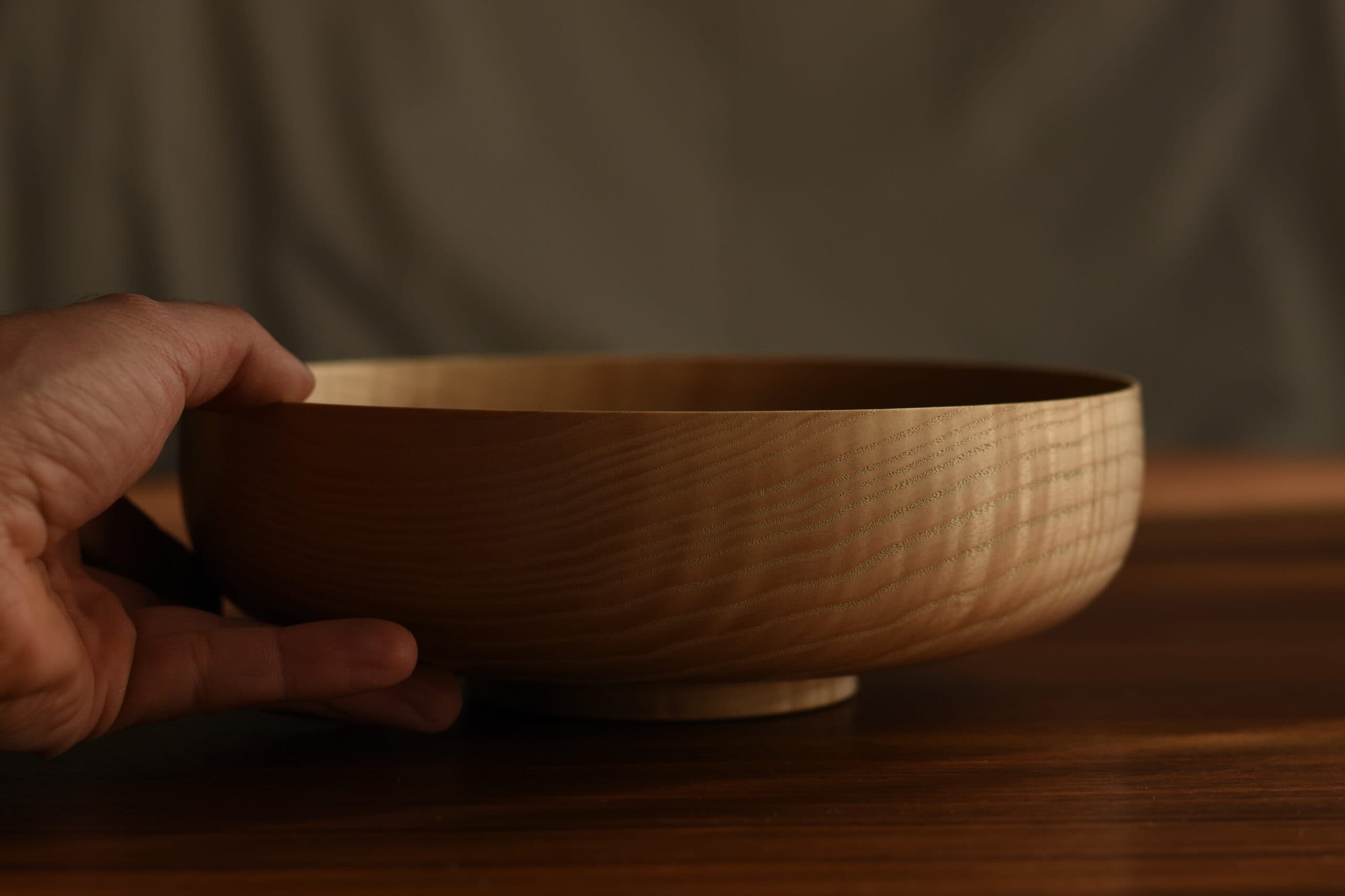 If using at the table, some foods like strawberries and beetroot can ocasionally stain light-colored wood. These stains usually fade over time, but to prevent such events from happening, avoid putting strong colored foods in your bowl. If you prefer a shiny appearance that is as close as possible to its original condition, oil regularly and avoid scratching by using wooden cutlery. If a richly patinated surface that reflects history is desired, oil once in a while and use your bowl with normal, common-sense care.