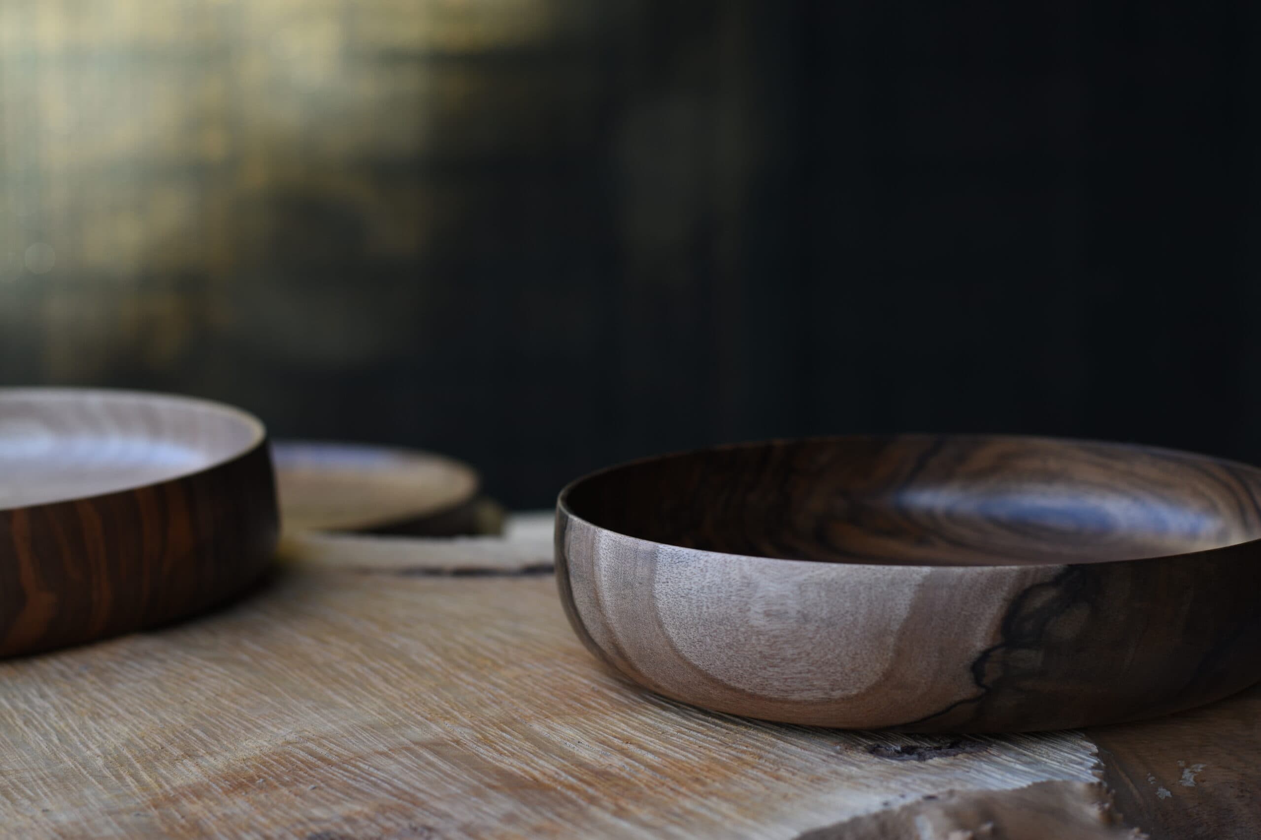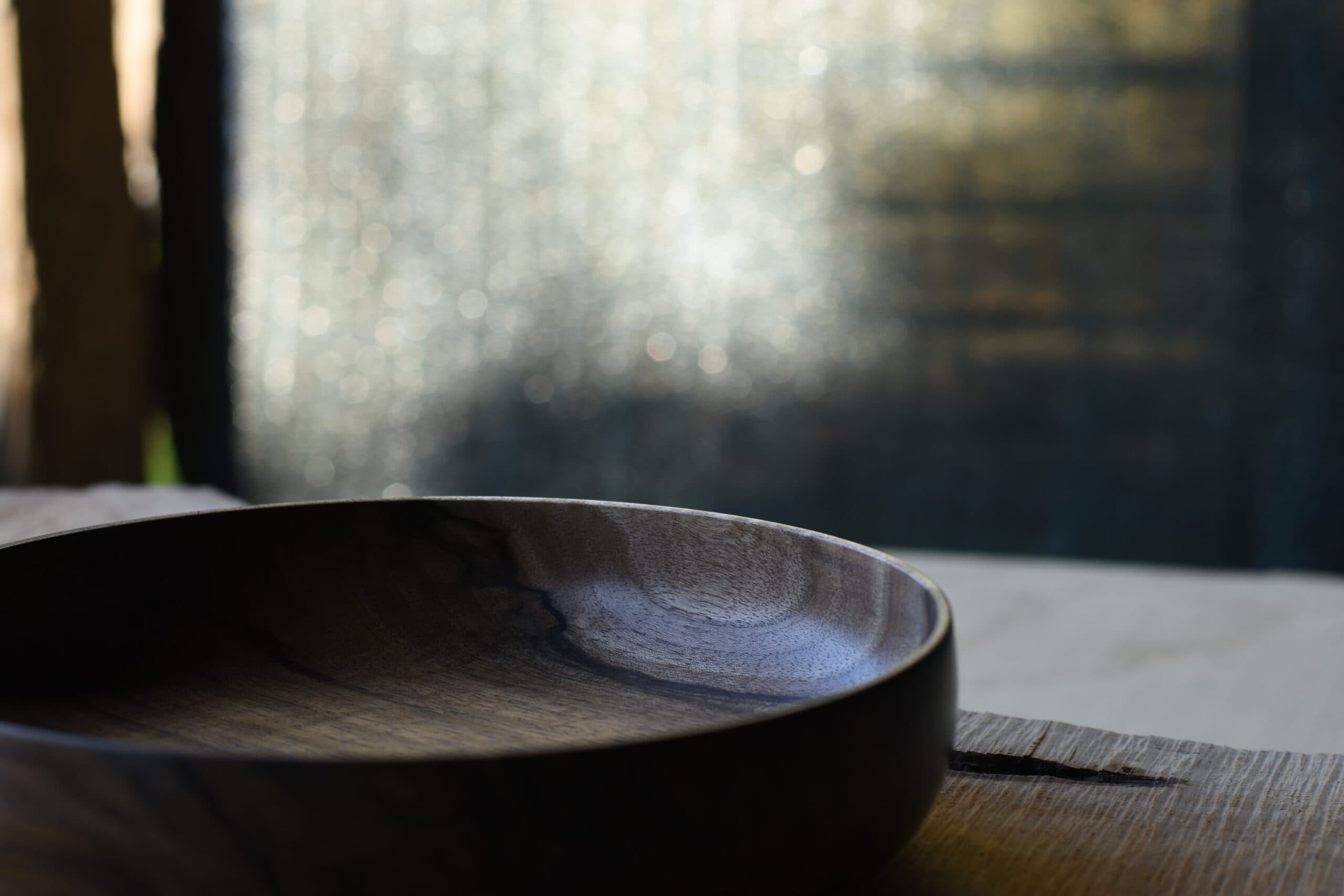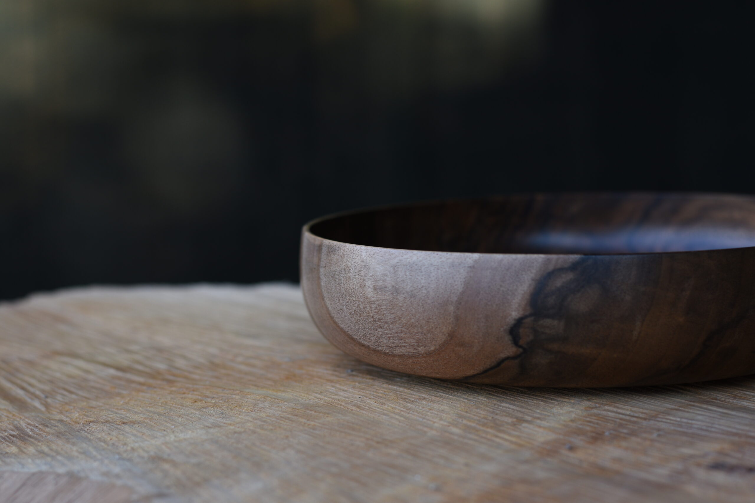 If using at the table, some foods like strawberries and beetroot can ocasionally stain light-colored wood. These stains usually fade over time, but to prevent such events from happening, avoid putting strong colored foods in your bowl. If you prefer a shiny appearance that is as close as possible to its original condition, oil regularly and avoid scratching by using wooden cutlery. If a richly patinated surface that reflects history is desired, oil once in a while and use your bowl with normal, common-sense care.